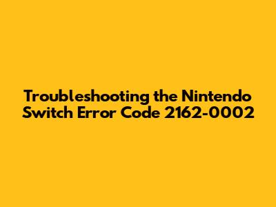 Troubleshooting the Nintendo Switch Error Code 2162-0002
