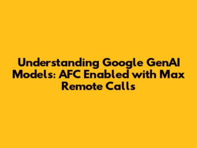 When working with advanced AI models, especially those offered by Google's Generative AI (GenAI) suite, you might encounter specific configurations that influence their behavior and performance. One such configuration is the AFC enabled with max remote calls: 10. This setting provides crucial insights into how the model manages its interactions, particularly when it needs to access external resources or perform operations that go beyond its immediate processing capabilities. Understanding this parameter is key to optimizing your AI applications, troubleshooting potential issues, and ensuring efficient resource utilization.